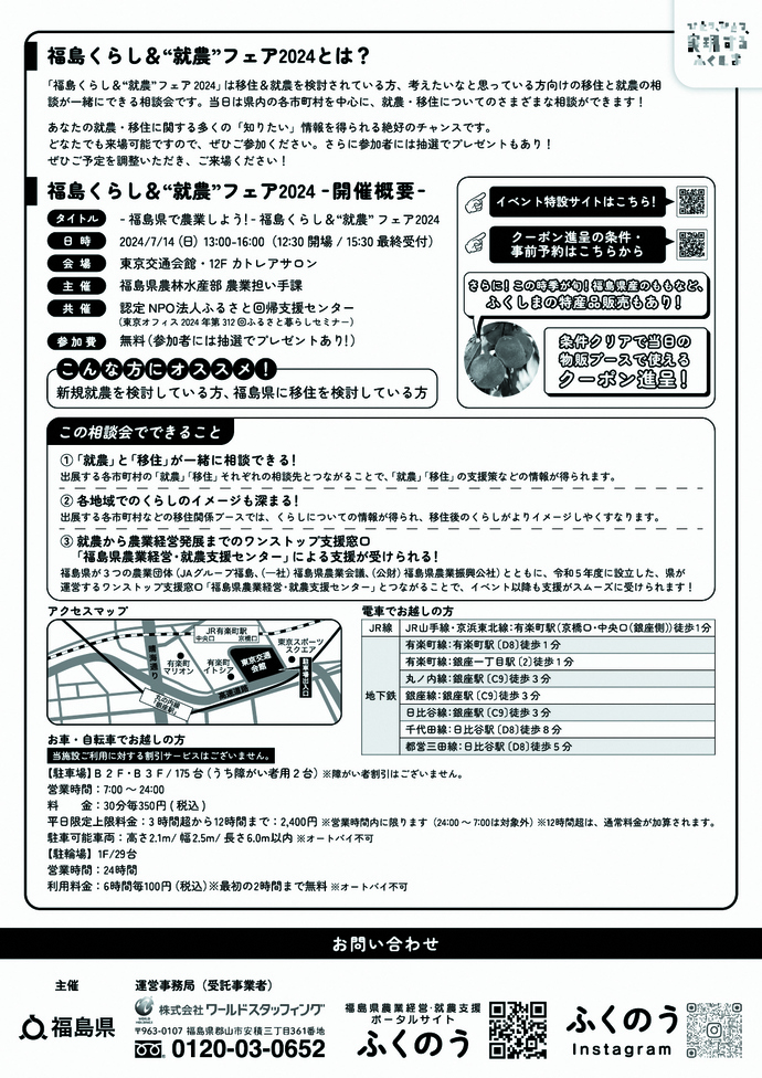 7月14日(日曜日)に東京交通会館(東京有楽町)で開催される「福島くらし&“就農”フェア2024」に、須賀川市のブースを出展しました。