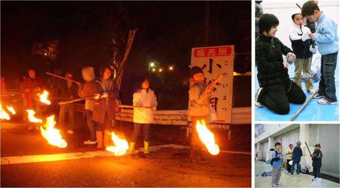 松明あかし当日は、小松明製作体験も行われ、観光客や子ども育成会など、約800人が行列に参加しています。